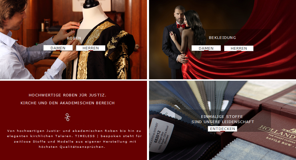 Von hochwertigen Justiz- und akademischen Roben bis hin zu eleganten kirchlichen Talaren. TIMELESS | bespoken steht für zeitlose Stoffe und Modelle aus eigener Herstellung mit höchsten Qualitätsansprüchen. |